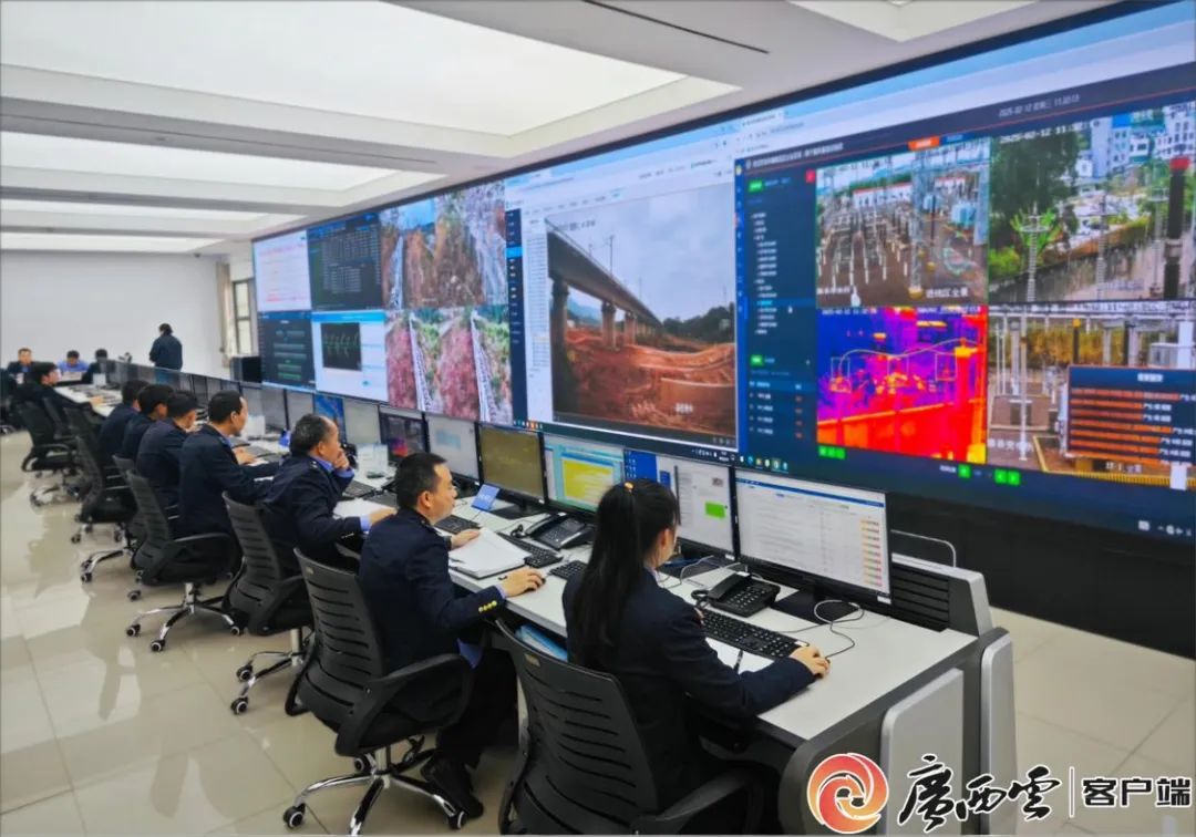 一天接发730余列客车、发送近20万人,这是广西南宁铁路枢纽每天运输旅客的人数。大客流考验着这座广西地区最大铁路枢纽的安全保障能力。一座巨屏、若干小屏,这里可以遥看贵南高铁南宁至荔波段307公里的高铁线。2月10日,记者来到国铁南宁局南宁高铁基础设施段安全生产指挥中心,看到调度员们聚精会神地盯着智能安防系统屏幕,查阅分析贵南高铁沿线是否有外来人员或者异物侵线。“这是全路首个智能安防系统,它目前在贵南高铁南宁至荔波段试用,可以实时监测沿线的危岩落石、泥石流等地质灾害,也能感应到沿线栅栏是否有异物入侵线路,通过智能图像对比提示,实现人防、物防、技防‘三位一体’运作。”南宁高铁基础设施段总调度长刘扬武介绍,调度员可以在足不出户的情况下第一时间观测到千里之外的铁道线,5分钟内完成风险研判并采取应对措施。刘扬武说:“在春运车流高度运转、夜间高铁持续上线的情况下,我们的‘天窗’时间会进一步压缩,而这套系统为我们快速定位隐患,安全防护线路提供了极大的技术支持。”不仅如此,这套系统还大大减少了劳力的投入。“过去需要4个人在24小时轮班不断查看1000多个摄像头,再进行人工比对再研判。这套系统上线以后,仅需1人即可完成此项工作,还能兼顾其他工作,效率提高60%至70%。”