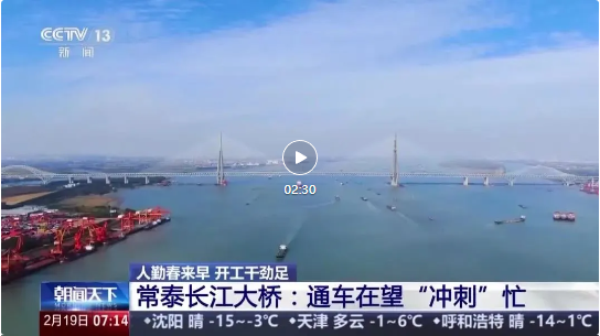 中铁大桥局常泰长江大桥项目部生产副经理 赵政:所有的工人过完春节以后立马回工地,把这些东西完善。大家都想早一点看到这个桥通车。