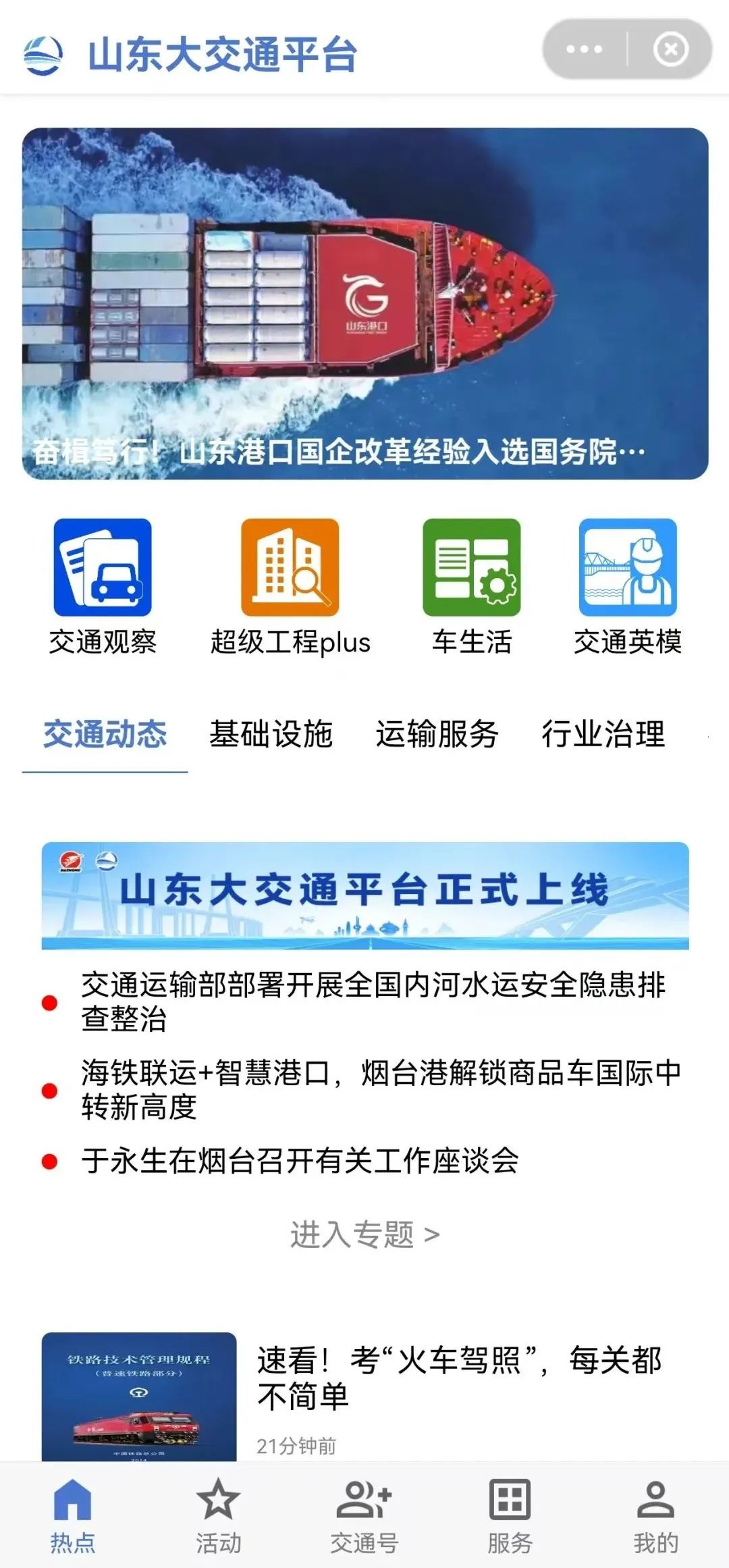 2月28日下午,山东大交通平台上线活动在济南举办。山东大交通平台正式上线,交通强国山东示范区有了新闻宣传与舆论引导主平台。