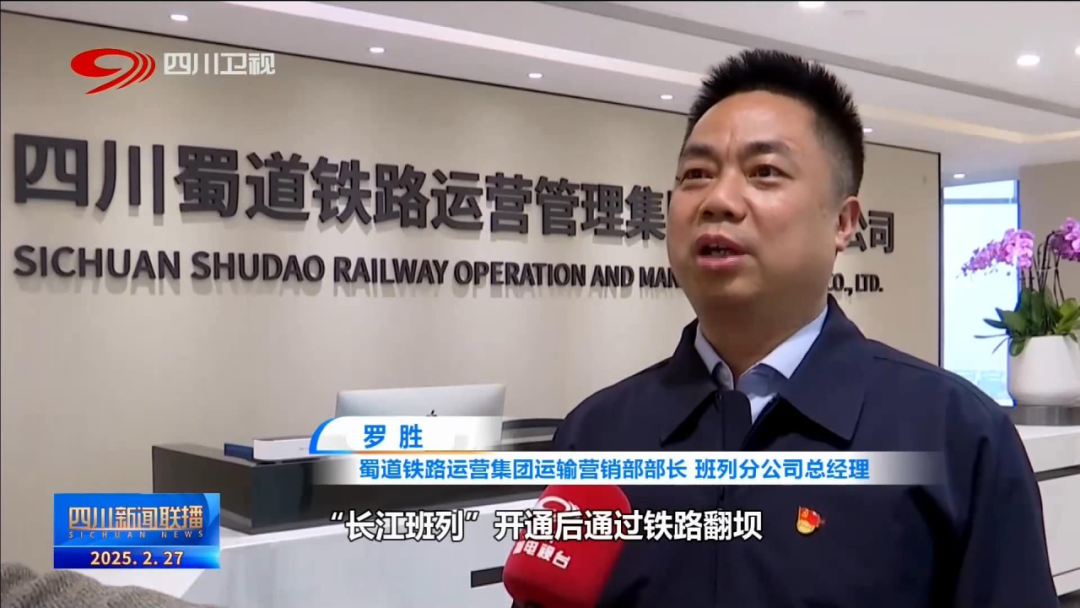 蜀道铁路运营集团运输营销部部长、班列分公司总经理 罗胜:“长江班列”开通后,通过铁路翻坝,避开三峡堵点,较传统水运最高可节省约三分之二的时间。(并)通过综合铁路和港口的优价、降低转运环节费用、物流资金降本及各地政府补贴等,已合力降低全程物流成本约3.1亿元。