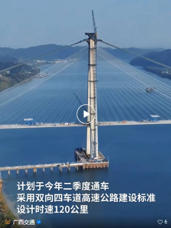 据介绍,大桥采用双向四车道高速公路建设标准,设计时速120公里。大桥通车以后,两岸通行时间将从1小时缩至5分钟,有效降低沿线乡镇农产品运输成本,带动当地肉桂、八角等特色产业的发展。届时,梧州地区横向出省通道之间的交通转换将更加方便快捷,珠江—西江经济区的交通脉络将进一步优化。