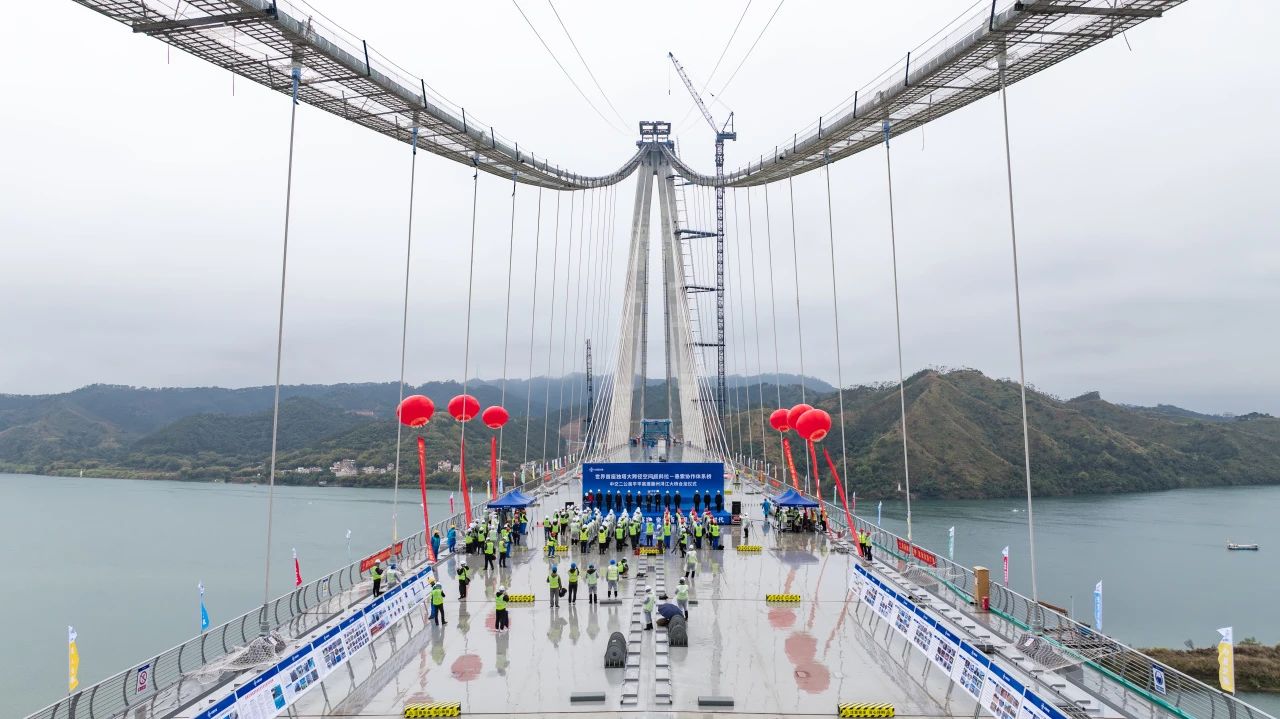 建设过程中,面对系列困难与技术难点,2021年、2022年和2024年,项目连续邀请多位院士召开咨询会,对协作体系构造进行了深入研究和优化。同时联合多家高校和企业,共同攻克独塔空间缆斜拉-悬索协作体系桥梁构造等多项关键技术难题。项目目前已获得国家专利29项,省部级工法4项,建成后将成为“中国桥”的又一世界级名片。