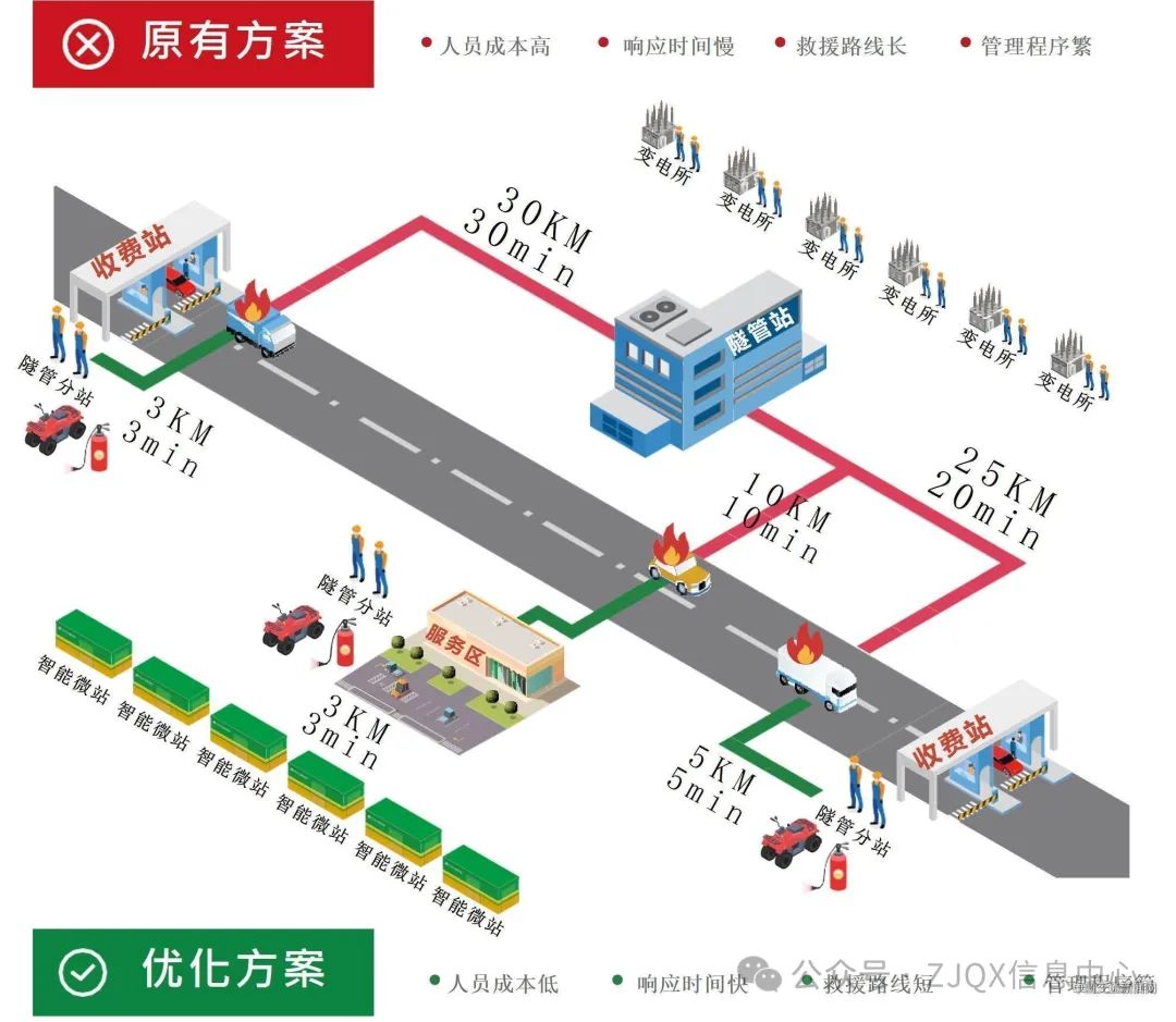效率优先,全流程再造的提速革命。建设快,因智能微站的集成化和预制化生产方式,使得设备的安装调试全部在工厂内完成,相较传统房建变电所建设模式,建设周期可缩短80%,建设效率高;响应快,基于系统24小时不间断的智能化管控及前后端协同分析,在“准无人值守”模式下,能显著提升设备感知速度和可靠性,同时,通过重构应急处置流程、增配详尽的应急预案,发生紧急情况下能立即启动相应的应急措施,提高了处置突发事件的能力及系统的安全性;管理快,依托先进的智能化系统,管理人员可远程实时监控隧道运行状态,有效简化运营流程、减少人工操作,运营管理及巡检养护效率显著提升。