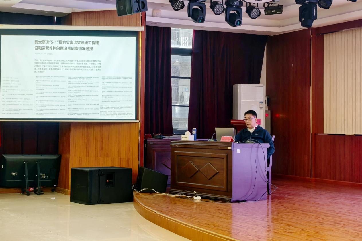 同时,还结合近年来的典型安全生产事故案例,以案为鉴、以案示警,深入剖析了当前高速公路运行中的潜在风险,并就安全生产中的常见问题及解决方案为参训人员做了详细的阐述。