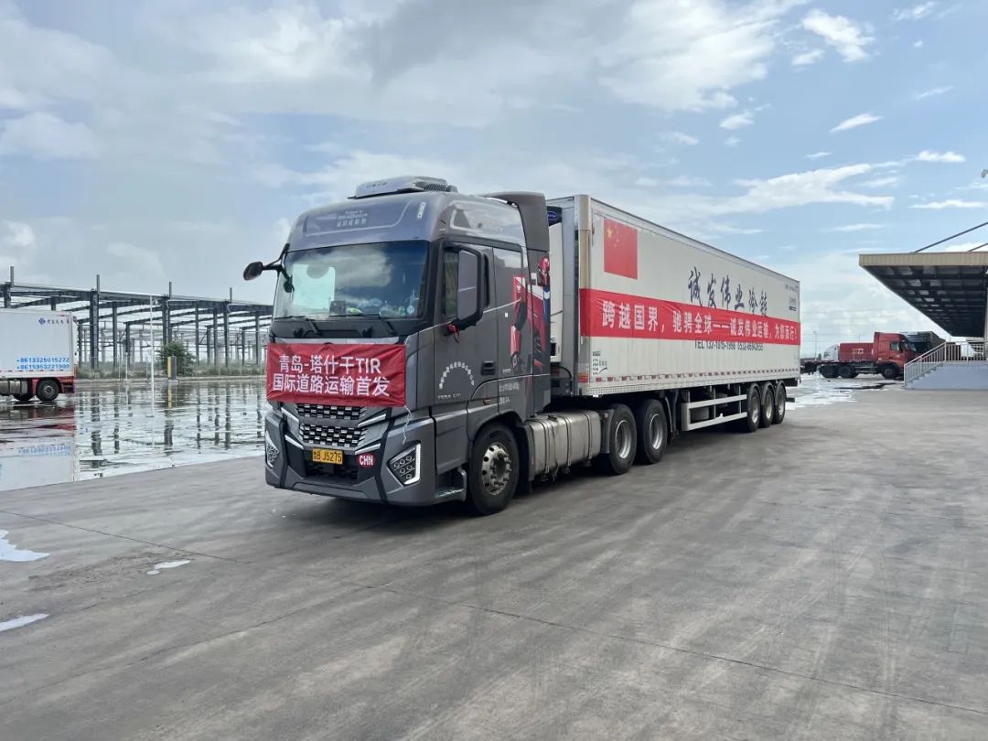 2024年7月26日,山东青岛西海岸利达物流有限公司3辆满载冷藏食品和配件的TIR(国际公路运输系统)运输车辆,自中国传化(上合)国际物流港出发,驶向目的地俄罗斯莫斯科。这是自青岛市2023年9月开通山东省首条TIR“中俄快线”以来,发运的第100辆次TIR运输车辆。