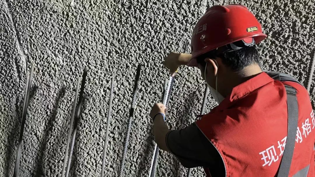 在该隧道施工过程中,项目建设团队加大工艺工装的创新力度,打造“1个隧道标准化施工方案,运用自动布料、附着式振捣、拱顶插入式振捣、防脱空报警、可视化端模、软搭接、拱顶带模注浆、视频监控系统8个智能化系统”的“1+8”施工体系。在开挖过程中,使用光面爆破技术,使岩面平顺,减少应力集中和危石,降低平均线性超挖量,控制喷射混凝土和二衬混凝土超耗,同时为防水板铺设创造有利条件,减少二次衬砌背后脱空等缺陷。在初期支护施工中,使用湿喷柔性刮板、钢架垂直度检测仪、钢架拱脚保护工装等先进工装,有效提升初支喷射混凝土成型质量和钢架安装精度,增强初期支护的稳定性。在衬砌施工中,采用衬砌防顶裂系统,利用软搭接模技术防止立模过程中混凝土顶裂,通过设置压力传感器和挤压预警装置,有效避免漏浆引起的混凝土质量问题;拱顶防空洞监测系统标配8个感应点,能实时监测混凝土浇筑情况,对拱顶空洞及时报警并记录,有效保证了衬砌质量,确保隧道安全高效掘进。
