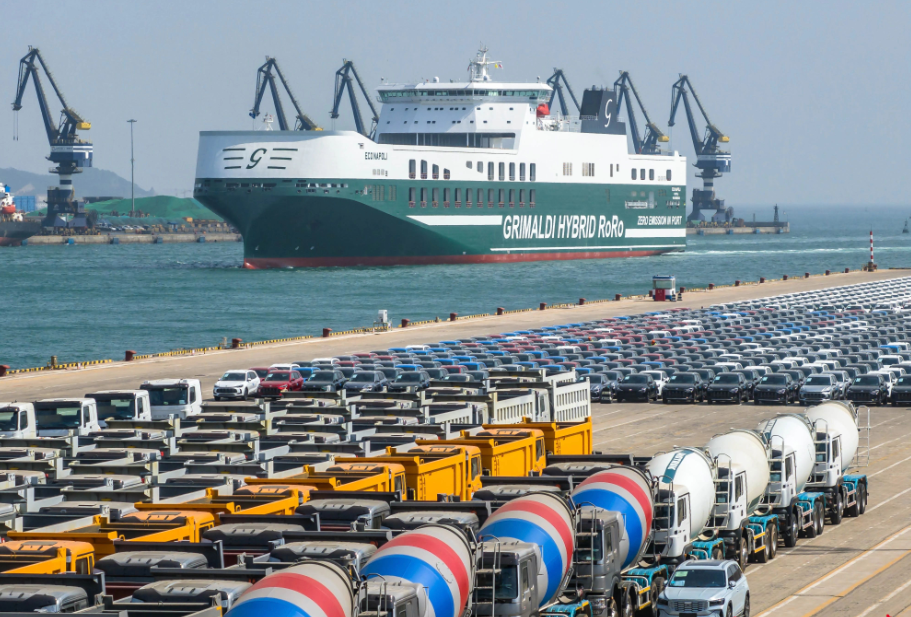 近日,全球最大环保型短途运输滚装船“那不勒斯港”轮在山东港口烟台港首航发运,搭载619台重型卡车及工程机械驶向非洲。