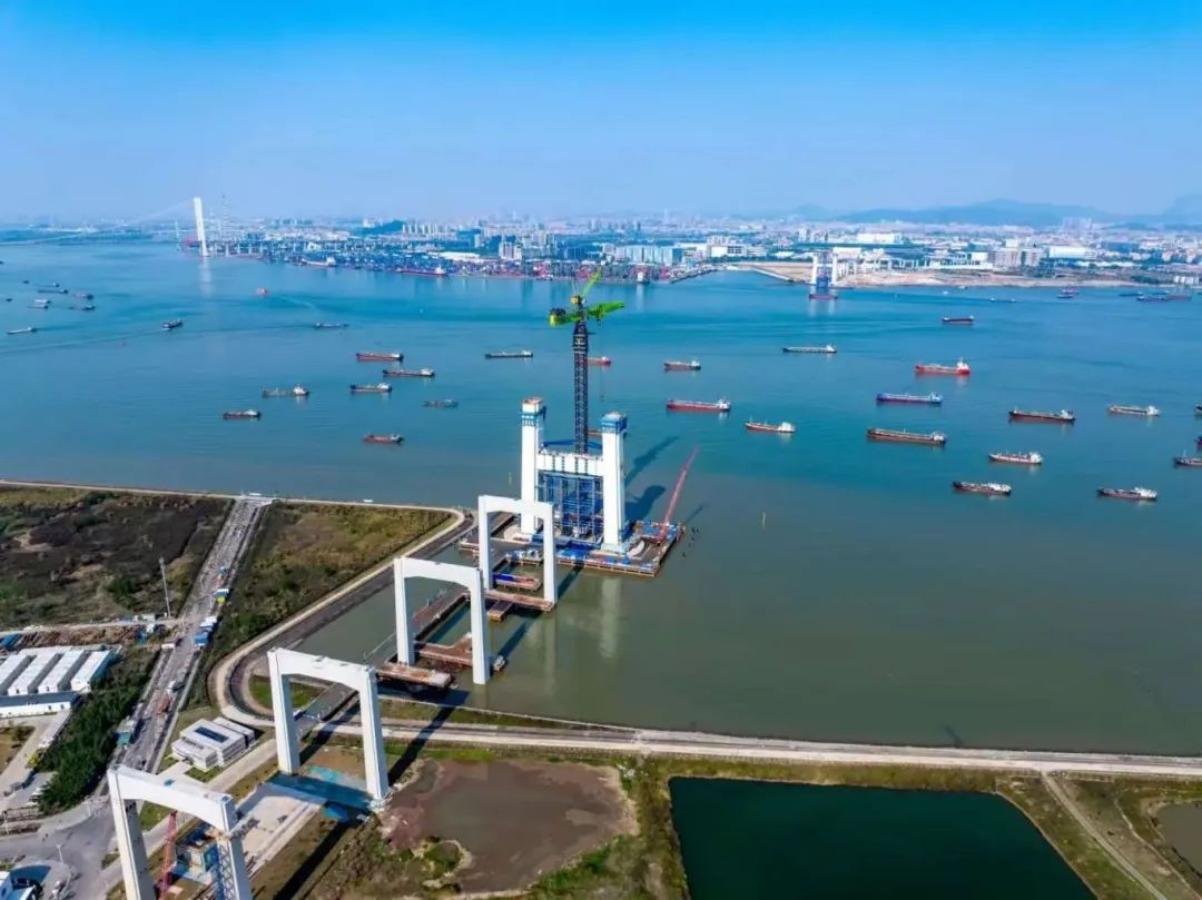 目前,项目正有序推进主桥狮子洋大桥主塔建设,锚碇正进行顶板施工,计划年内实现主塔塔高突破200米、锚碇完成锚体施工70%;引桥工程已转入上部结构施工阶段。