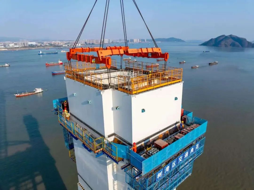 本次浇筑的钢壳节段,高5.4米、重148吨,浇筑方量达405立方米。大桥钢壳浇筑均采用具备高强、高弹、高稳健、低收缩等性能的C80混凝土,在国内首次实现该强度混凝土在组合索塔中成功应用。