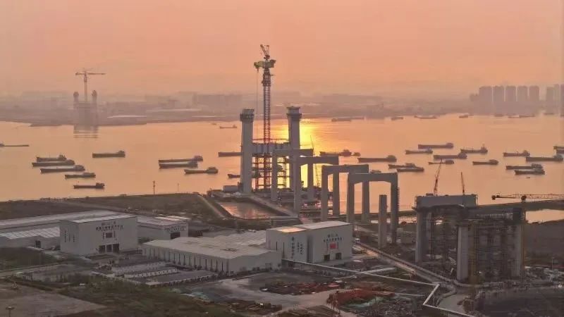 大桥索塔塔高达342米,相当于110层楼高,为钢板-混凝土组合结构,单个索塔自下而上由62个钢壳节段和6道钢横梁构成。