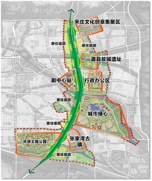 地面层:该层的通道主要有南北向的二环东地面主干路、东西向二环北路,同步完善了地面道路和慢行系统。
