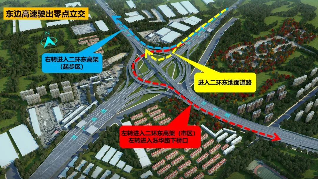 新建的零点立交共设置14条匝道(含劝返车道),长度9.77公里。本项目为山东省首座可同时满足高速公路、城市快速路、城市主干路三者间交通转换的五位一体综合交通枢纽,可实现城市主干路、城市快速路、轨道交通、高速公路和国家干线公路等多功能需求,同步完善了地面道路和慢行系统;项目建成后,路网的运行效率、通行能力和服务能力将得到大幅提升。