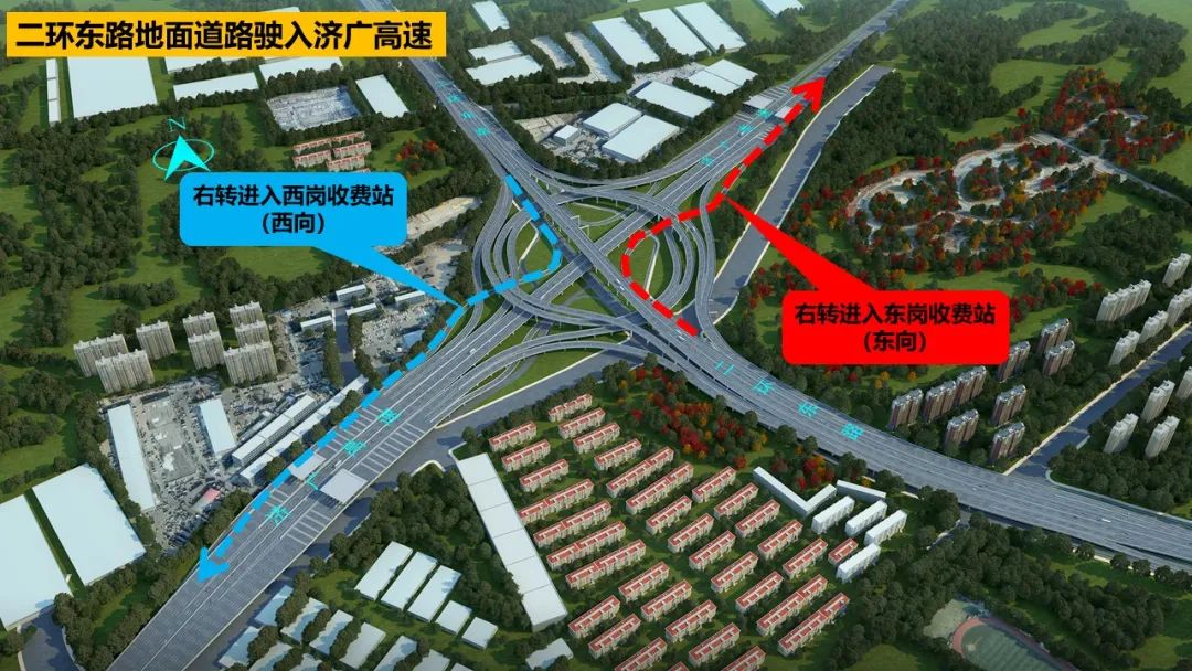 车辆从二环东路地面主干路驶入济广高速路线有2条: