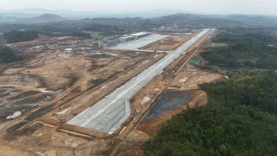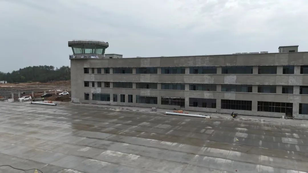 项目为分期建设,目前处于一期建设阶段,占地面积约730亩,投资约4.3亿元,按A1机场标准规划设计,分为飞行区、航站区和航空产业大道,飞行区等级计划按2B标准建设,跑道长1200米、宽30米,停机坪长511.6米、宽73.5米。目前飞行区等级按3C标准建设,现已建成跑道长度为1600米。