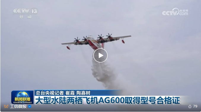祝贺!国产大型水陆两栖灭火飞机AG600获颁型号合格证