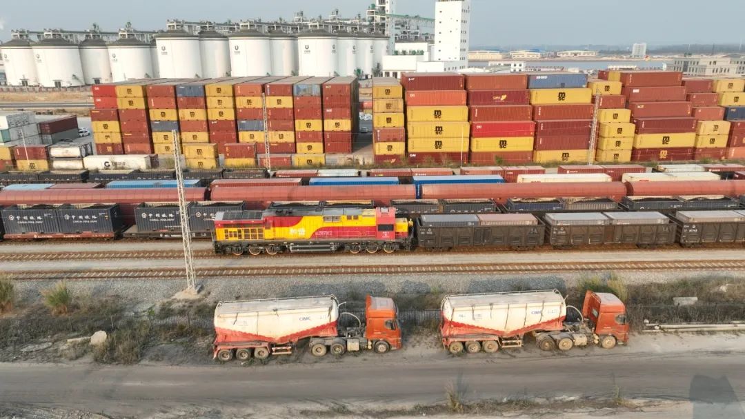 在钦州港区,随着钦州铁路中心站与集装箱码头间的围网全部拆除,中心站和集装箱码头作业区域在物理空间上实现联通,西部陆海新通道多式联运集装箱转运实现港口多式联运空间一体化。同时,钦州中心站和集装箱码头堆场加快设施设备共享共用。多式联运一体化后,钦州集装箱码头的多式联运日均转运量由原来的278车增至550车,北部湾港多式联运能力得到充分释放。