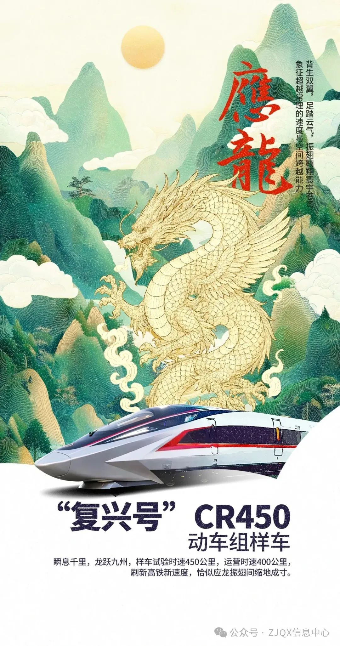 “复兴号”CR450动车组样车:瞬息千里,龙跃九州,样车试验时速450公里,运营时速400公里,刷新高铁新速度,恰似应龙振翅间缩地成寸。