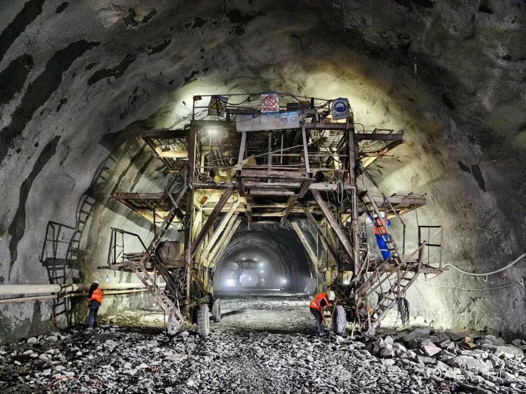 在施工过程中,项目建设者克服了隧道穿越岩爆、涌水、破碎带等高风险地质难题,并通过创新应用新型光爆帽技术,使炮眼残存率达95%,提高光爆成型效果的同时降低了火工品用量,日均掘进效率提升30%,保障了隧道如期贯通。