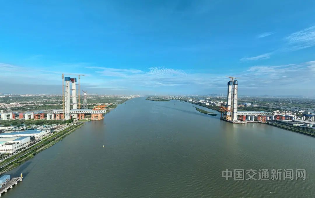 新建深江高铁正线全长约116公里,中铁大桥局集团承建的公铁合建段主桥是全线关键控制性工程之一,长度1.4公里,主跨808米,采用世界首创公铁合建超短边跨钢混箱桁组合梁体系,主塔为H型,总高258米,分47个节段。大桥上层为8车道城市快速公路,下层为4线高速铁路。