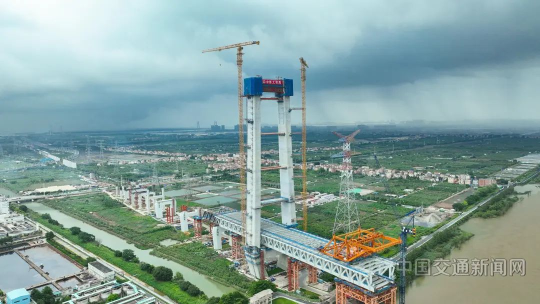 6月17日,由中铁大桥局承建、铁四院设计的深江高铁洪奇沥水道公铁大桥南沙侧49号主塔上横梁混凝土首次浇筑完成,主塔高度达到了203米。