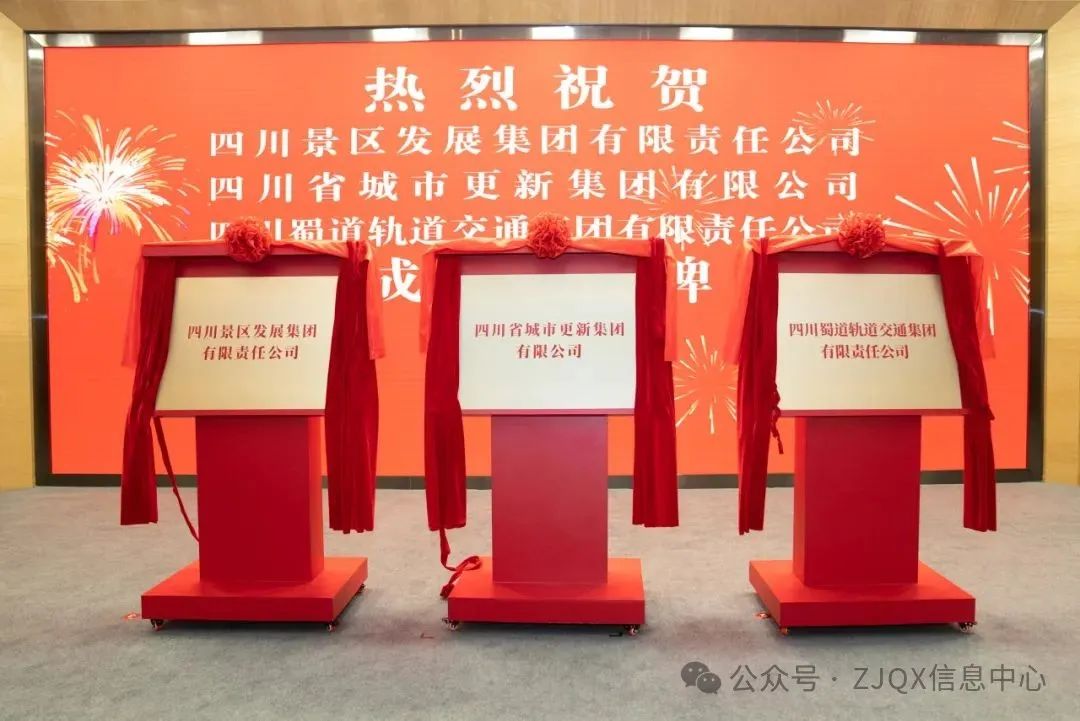 7月28日,四川景区发展集团有限责任公司、四川省城市更新集团有限公司、四川蜀道轨道交通集团有限责任公司揭牌仪式在四川成都举行。