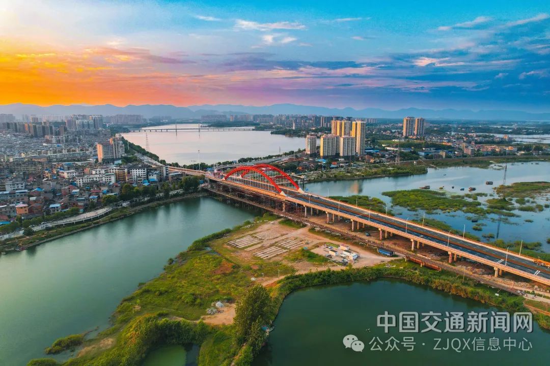 主桥采用下承式钢管混凝土系杆拱桥设计,长约600米,跨度130米,并成功实现“一跨过江”,彻底取消了河道中的阻航墩柱。这一设计将通航净高从老桥汛期最低仅0.5米大幅提升至8米,通航标准跃升至1000吨级。新桥建成后,彻底结束了以往因通航高度不足导致每年约130天无法通航的历史。同时,桥头区域创新采用上下分行的立体设计,将有效缓解莲花湖大道、兴国大道等周边路网的交通压力。