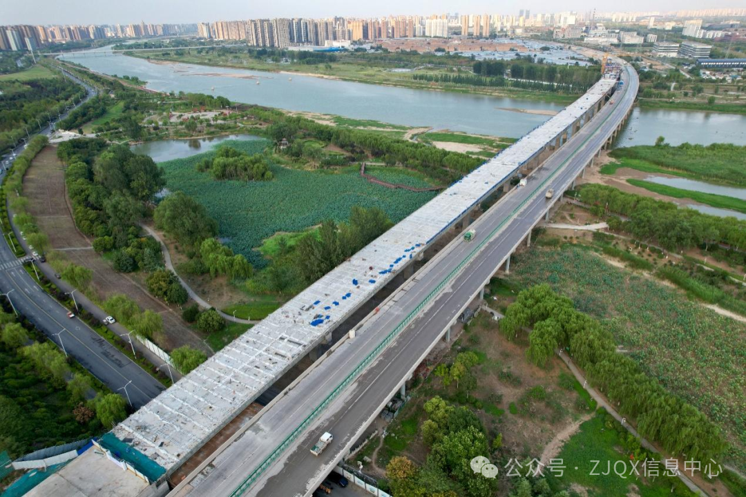 渭河特大桥位于咸阳市秦都区曹家寨村西,沿渭河冲洪积平原横跨渭河,左幅为原桥加固后利用,桥长996.5米,右幅为新建桥梁,上部结构采用预制箱梁+波形钢腹板连续梁+钢混组合梁,桥长1085.0米。年底项目建成后,对有效改善区域交通运输条件,增强西安作为国家中心城市的辐射能力,加快交通提质增效升级,拉动沿线区域经济加快发展,推动关中平原城市群、西咸一体化的进程具有重要意义。