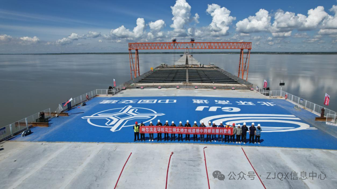 【黑龙江】夏季攻势丨智能系统助力精准落梁,哈尔滨都市圈北环松花江特大桥主航道桥中跨贯通