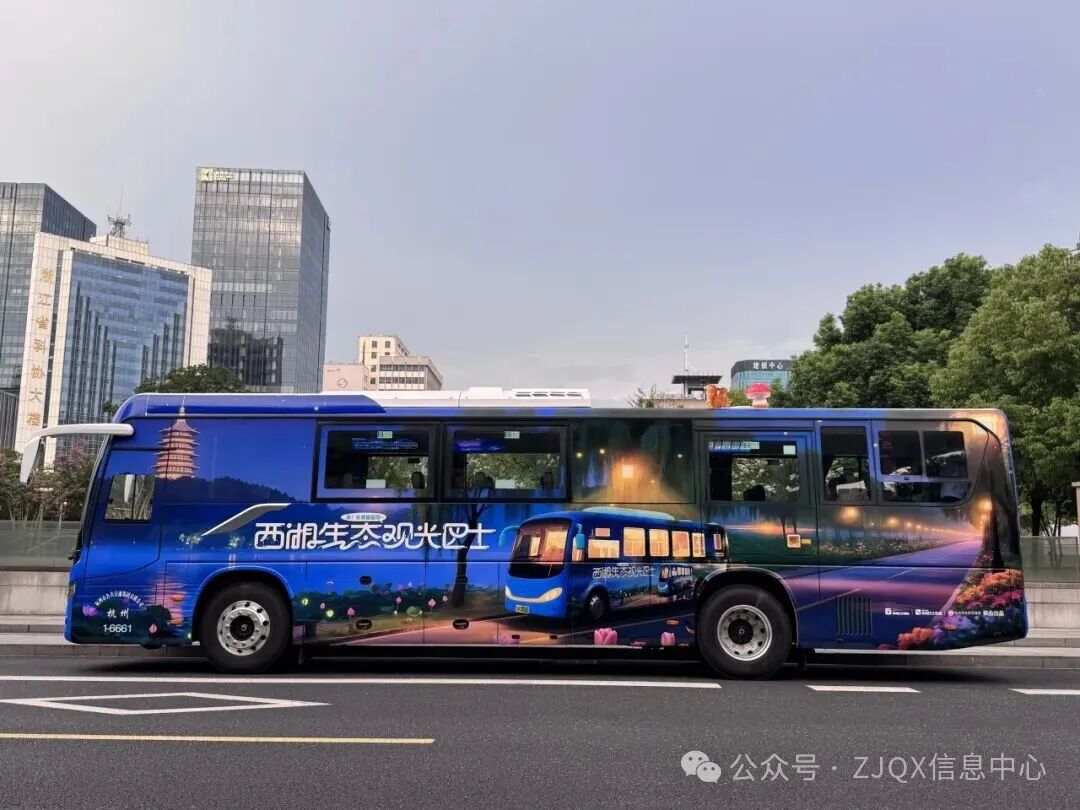 另一条“西湖生态观光巴士”则聚焦生态自然疗愈主题,线路串联西湖西线的生态秘境。车辆外观采用“车中画”设计,车厢内布置生态标本墙和铺满苔藓的文创展示板,并配有自然香氛系统,打造“行进中的自然博物馆”。