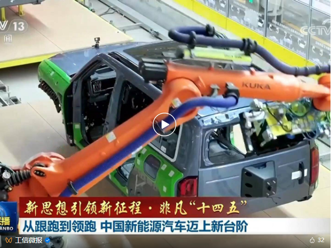 习近平总书记指出,发展新能源汽车是我国从汽车大国迈向汽车强国的必由之路。“十四五”期间,我国汽车产业创新步伐不断加快,新能源汽车产销规模、核心技术、产业链生态等实现跨越式突破,带动中国汽车出口首次位居全球第一。从跟跑到引领,中国向着汽车强国大步迈进。