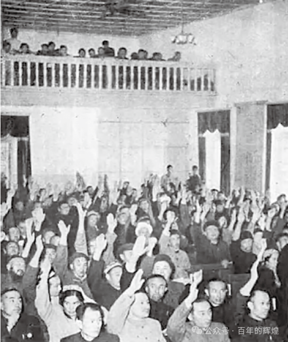 参加新疆省一届人大二次会议的代表们选举新疆维吾尔自治区人民委员会的组成人员