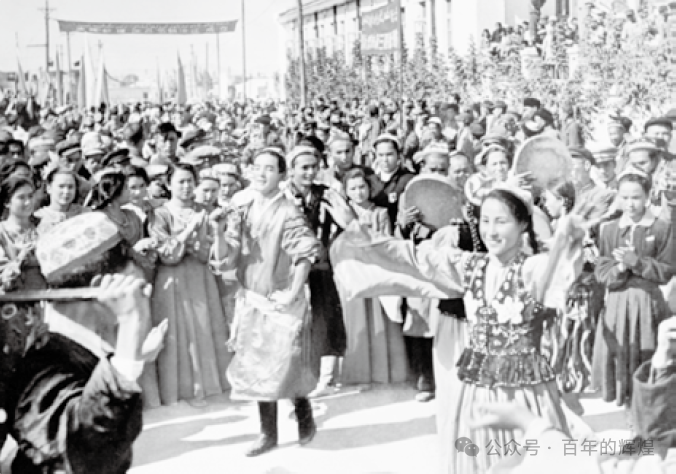 各族群众载歌载舞,庆祝新疆维吾尔自治区成立