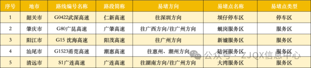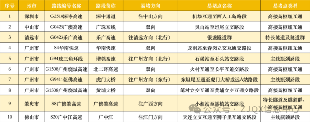 繁忙高速公路路段(含收费站、高接高枢纽互通)共10处: