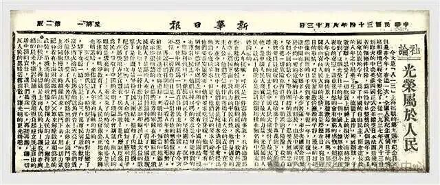 1945年8月13日,《新华日报》发表社论《光荣属于人民》。(西南政法大学新闻传播学院供图)