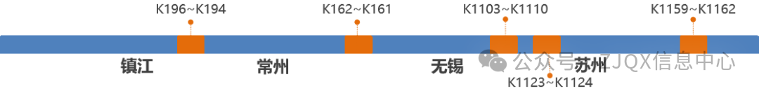 G42沪蓉高速江苏段全线路段长、出口多,为避免车辆驶近互通枢纽区域时频繁变道,建设项目在宁镇段全路段互通出口500m预告标志上,附着设置下一出口预告标志,同时在路段范围内增设部分地点距离标志,优化交通引导。