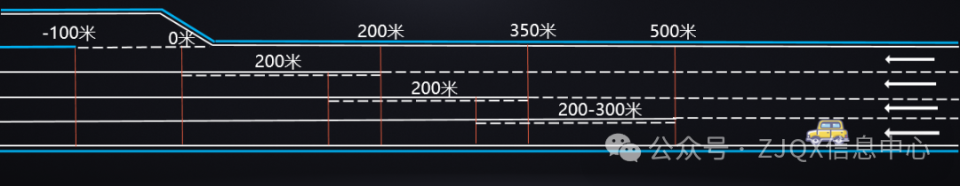 针对事故多发的一般路段互通出入口,建设项目采用延长加减速车道、出口阶梯实线、虚实线、地面文字、匝道车道优化等措施降低事故发生率。