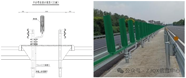 针对大流量路段中分带绿化养护作业难度大、风险高的情况,从2021年起,G42沪蓉高速江苏段利用养护大中修机会,在苏州、无锡段进行中分带硬化试点。主要采用了无沙混凝土、绿化草皮、有机物碎屑等方式,将中分带原有灌木草坪移除,对中分带进行硬化并在中分带内设置防眩板,为今后的智能化机械养护预留条件。同时降低中分带除草、清扫频率,极大地降低道路养护的安全风险,对大流量路段行车的高效畅通提供了有力支持。