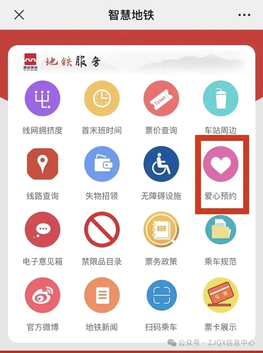 西安地铁全线网各站均提供爱心预约服务,老年人群或有特殊需求的乘客,可在地铁运营时间内,提前60分钟选择通过西安地铁官方App、微信公众号“西安地铁运营号”或西安地铁服务热线029-89093123三种渠道进行爱心预约,工作人员在收集乘客的出行信息后,将安排爱心帮扶人员在相应出行时间、站点为乘客提供进出站以及换乘帮扶服务。