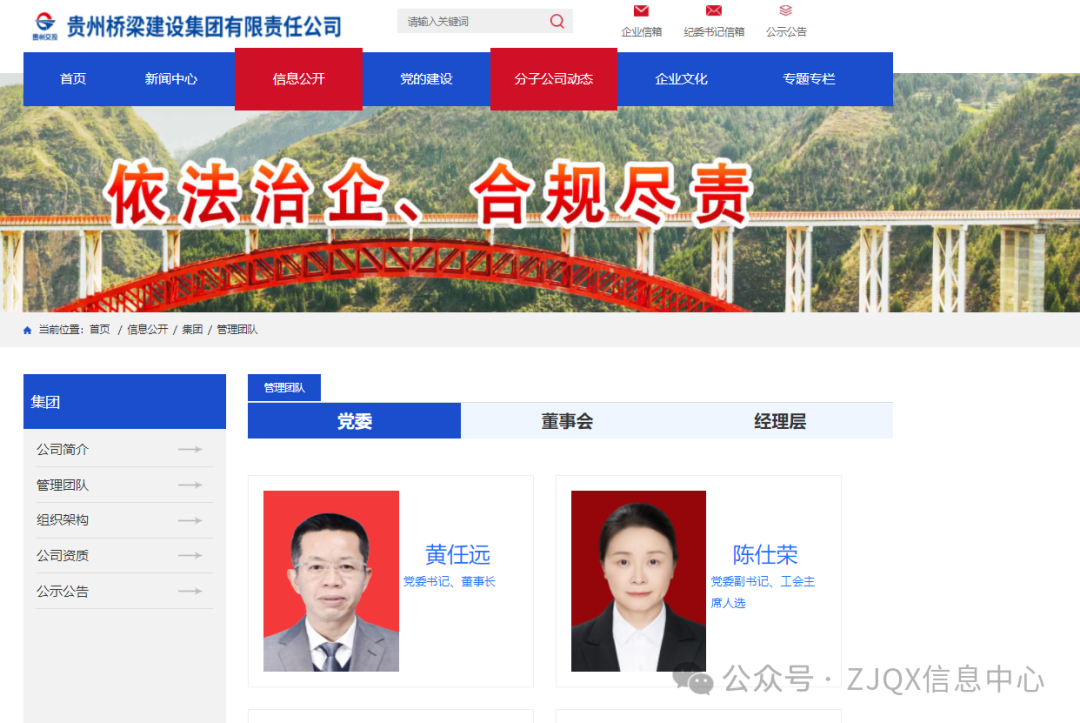 日前,从贵州桥梁建设集团有限责任公司(以下简称“贵州桥梁集团”)官网获悉,黄任远已任贵州桥梁集团党委书记、董事长。