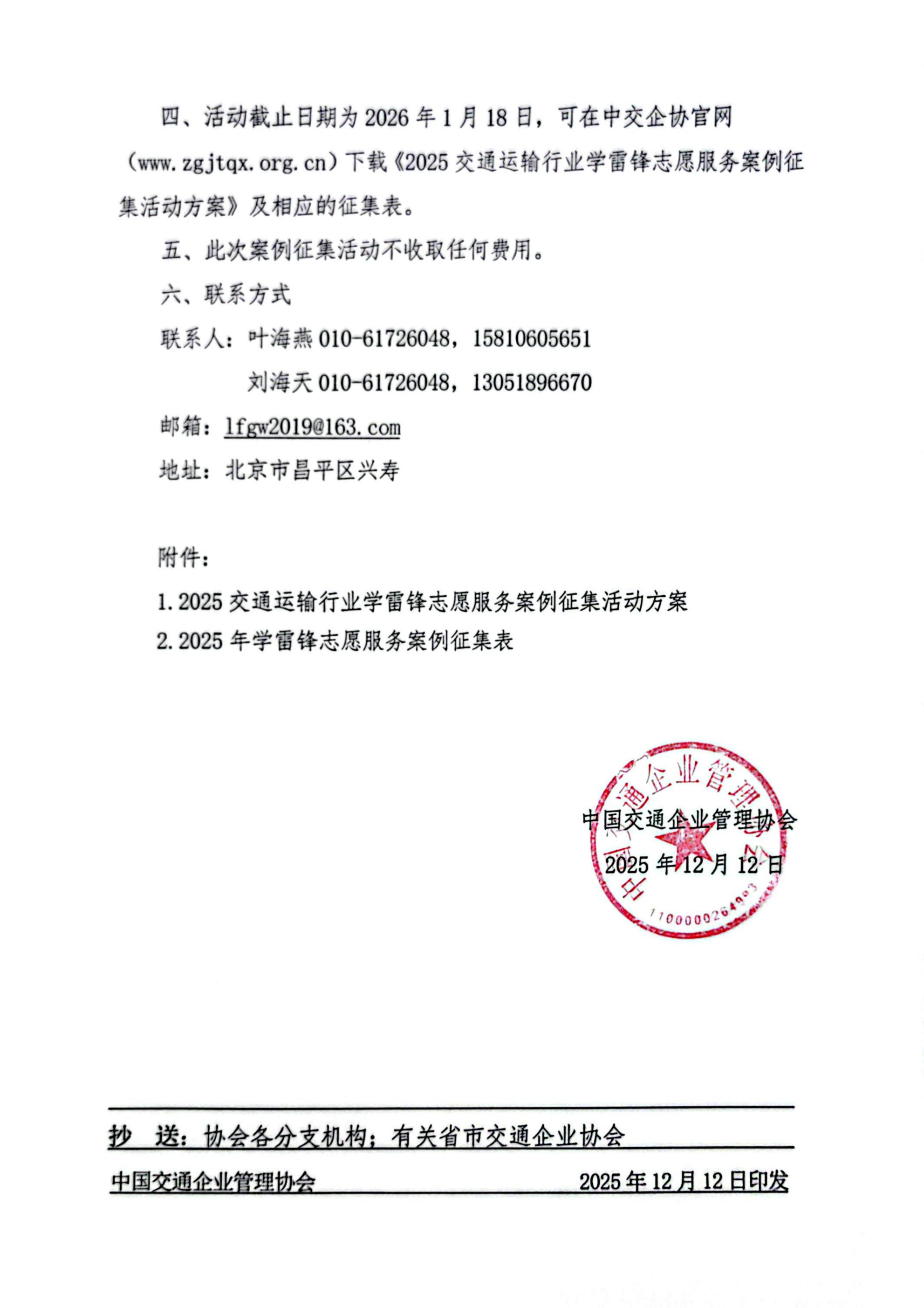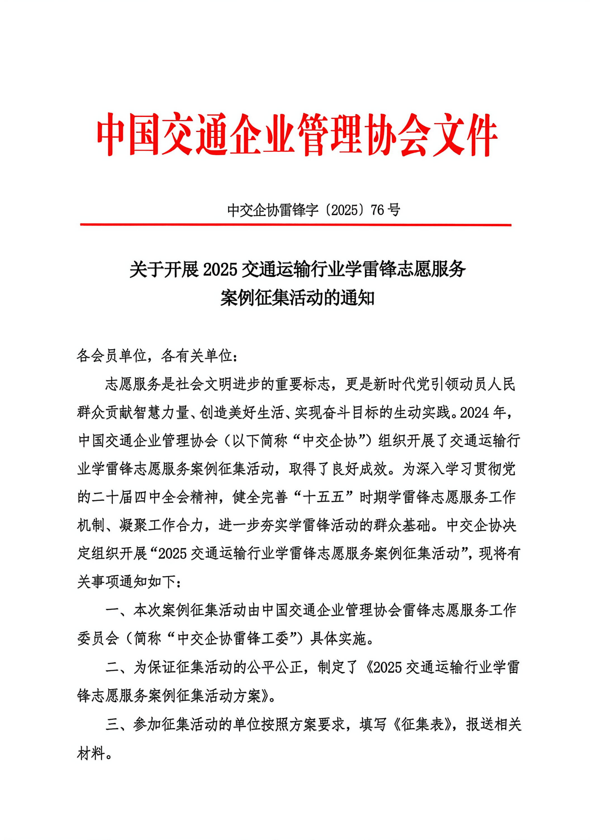 时间:2025-12-15 | 来源:中交企协雷锋字〔2025〕76号