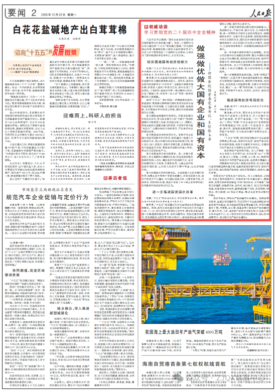 12月22日,《人民日报》要闻版刊发国务院国资委党委书记、主任张玉卓专访《做强做优做大国有企业和国有资本(权威访谈·学习贯彻党的二十届四中全会精神)》。小新为您全文分享如下——