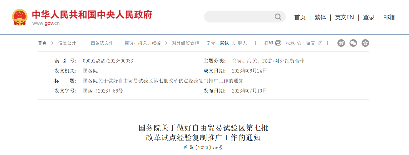 国务院关于做好自由贸易试验区第七批改革试点经验复制推广工作的通知国函〔2023〕56号各省、自治区、直辖市人民政府…