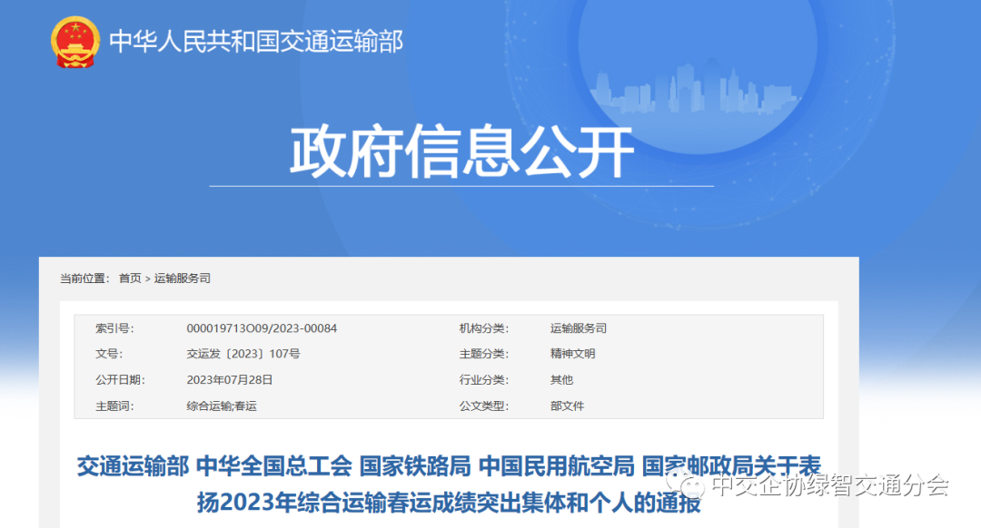 交通运输部 中华全国总工会 国家铁路局 中国民用航空局 国家邮政局关于表扬2023年综合运输春运成绩突出集体和个人的通报