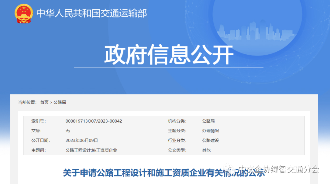 关于申请公路工程设计和施工资质企业有关情况的公示