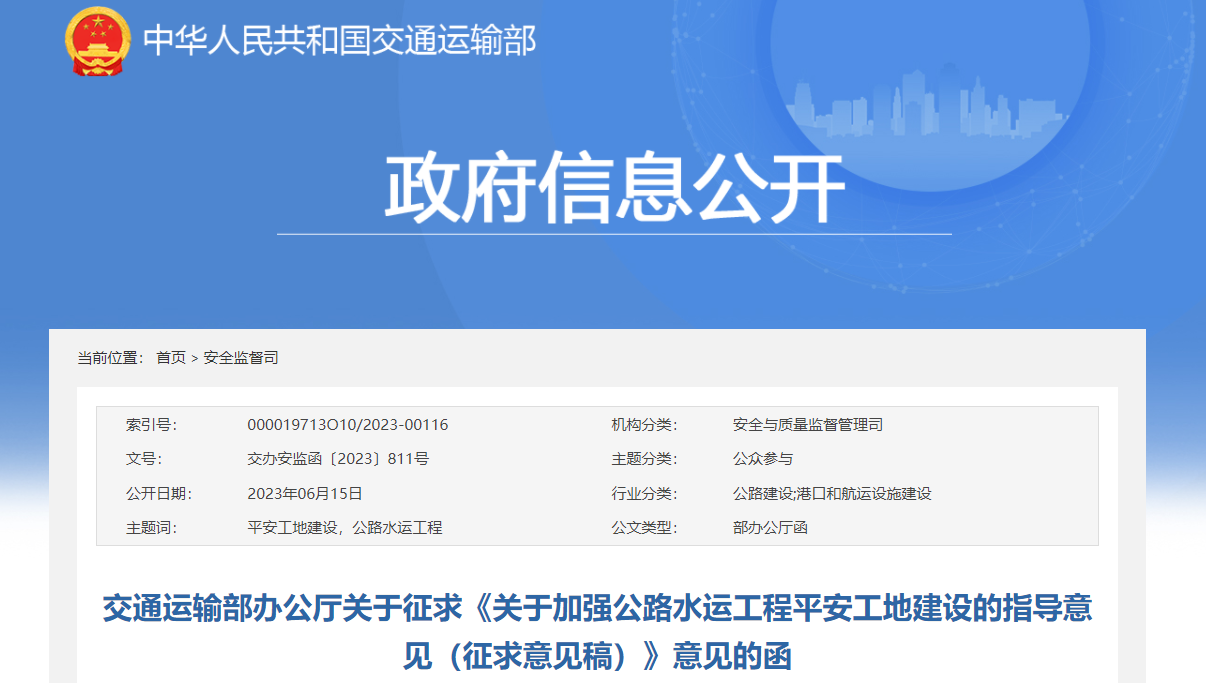 交通运输部办公厅关于征求《关于加强公路水运工程平安工地建设的指导意见(征求意见稿)》意见的函