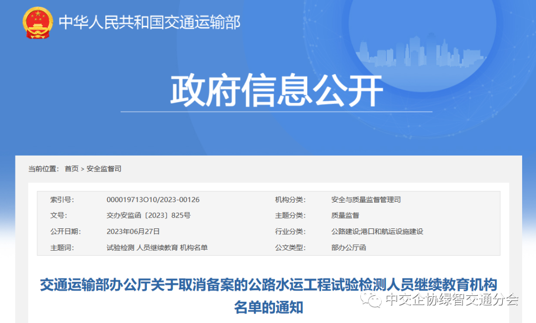 交通运输部办公厅关于取消备案的公路水运工程试验检测人员继续教育机构名单的通知