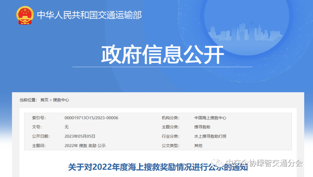 关于对2022年度海上搜救奖励情况进行公示的通知