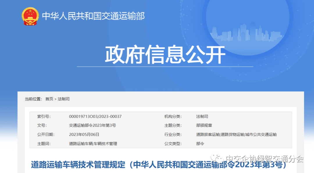 《道路运输车辆技术管理规定》已于2023年4月14日经第8次部务会议通过,现予公布,自2023年6月1日起施行。部长李小鹏…