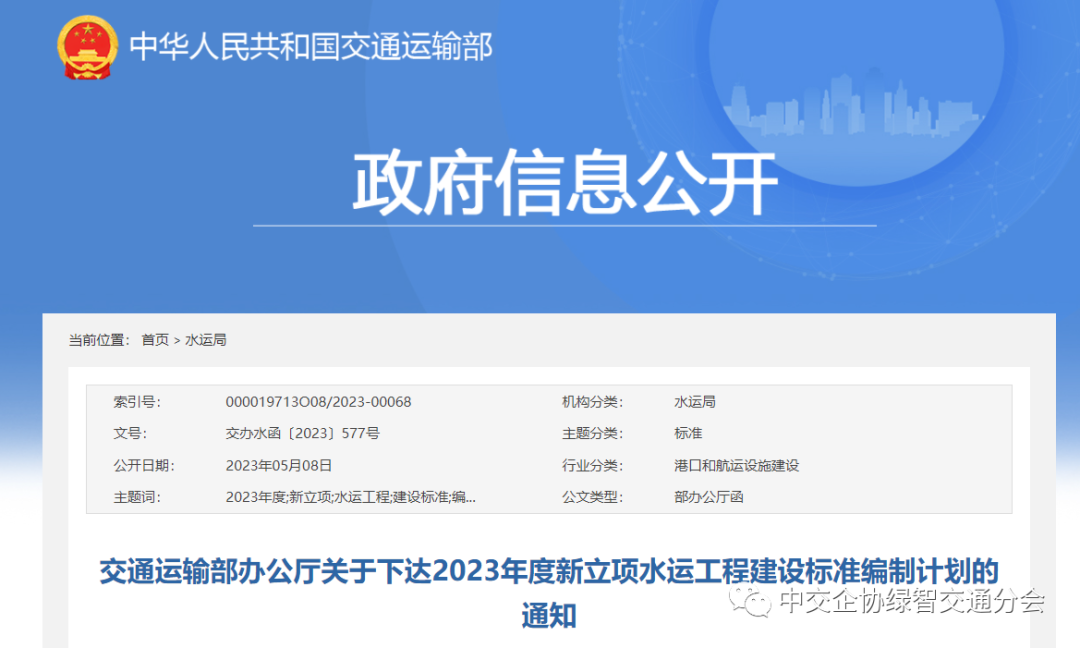 交通运输部办公厅关于下达2023年度新立项水运工程建设标准编制计划的通知