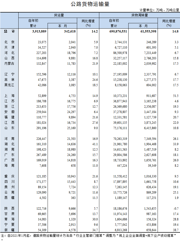 2021年12月公路货物运输量